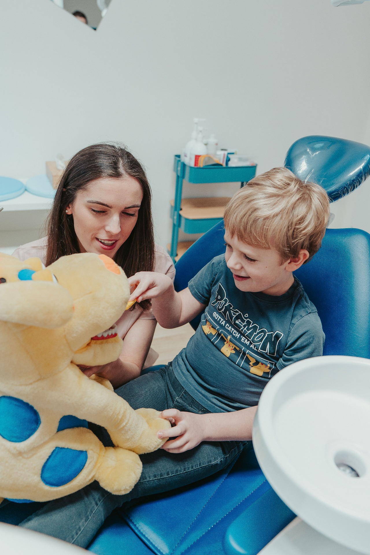 Spolupracujeme s rodiči, vysvětlujeme, učíme a budujeme pozitivní vztah k péči o zuby, bez tlaku a strachu.